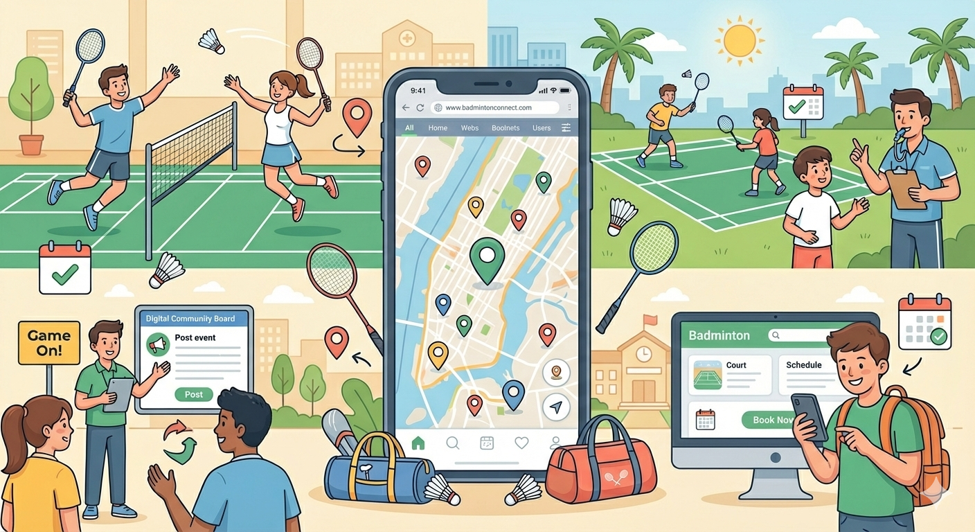 Your all-in-one hub for badminton. Discover courts, coaches, games, events, and gear near you. Built for players, by a player.